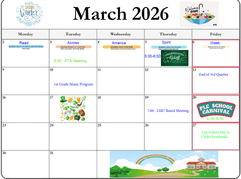 - Tuesday, March 03, 2026: PTA Meeting